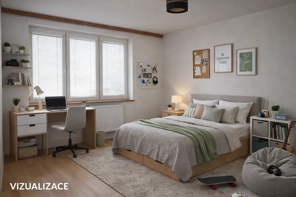 Další potenciál se skrývá v zateplené půdě, která nabízí možnost rozšíření obytné plochy – ať už o další pokoje, pracovnu nebo relaxační zónu. Vedle domu se nachází pozemek vhodný pro vybudování přístřešku na auto, takže parkování bude vždy pohodlné.