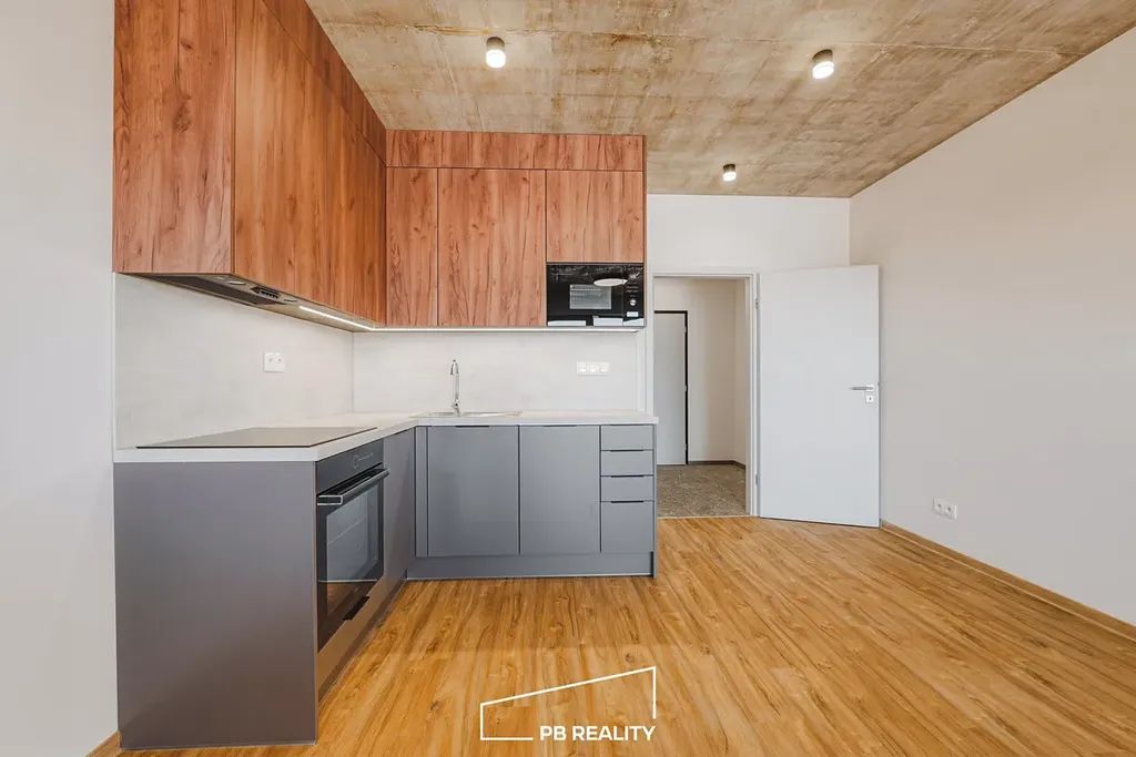 Bytová jednotka je vybavena kuchyňskou linkou včetně spotřebičů. Ostatní vybavení je ponecháno na novém nájemci – ideální příležitost vytvořit si domov podle vlastního vkusu.