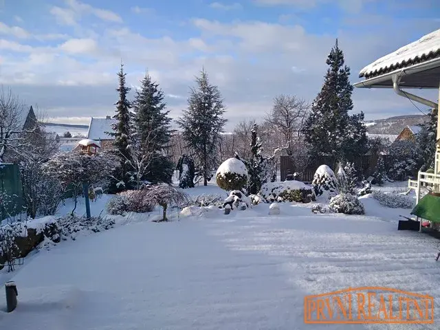 - zádveří, 3 pokoje, obývací pokoj s krbem, kuchyňským koutem a jídelnou, koupelna s WC