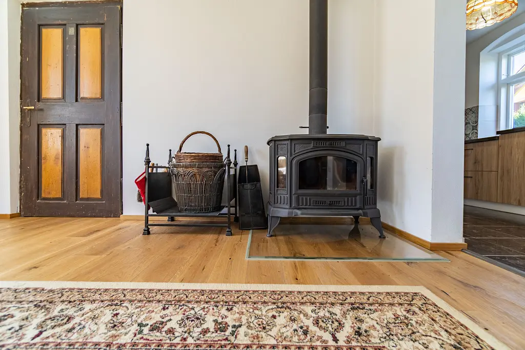 V obývacím pokoji jsou krbová kamna na tuhá paliva s rozvody do vyššího patra, která otápí přízemí a podkroví. V domě jsou 3 klimatizační jednotky, které v letě zajistí příjemnou teplotu v domě a v zimě jej bez problémů vytopí. V koupelně je podlahové vytápění.