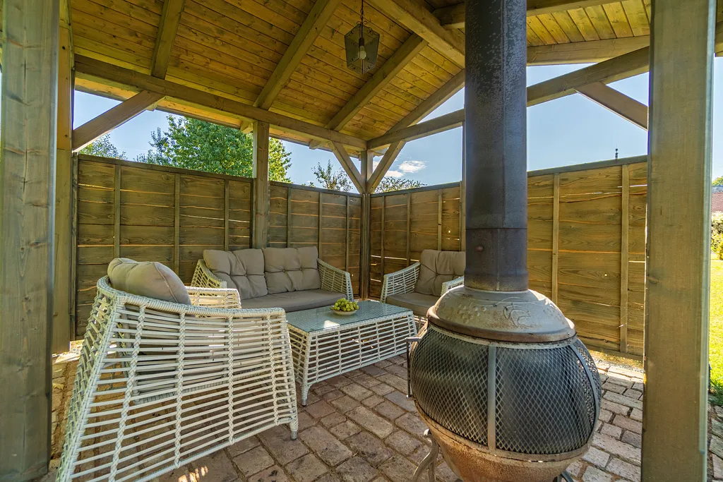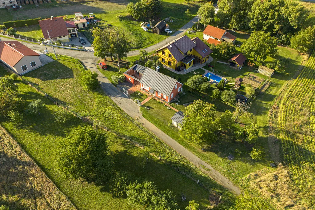 Dům obklopuje krásná zahrada s jezírkem a altánem k posezení a grilování. Celková výměra pozemku je 536 m². Při krásném východu slunce si vychutnáte nádherné výhledy do okolí, které jsou nezapomenutelné. Nemovitost je vhodná i ke klidné rekreaci.