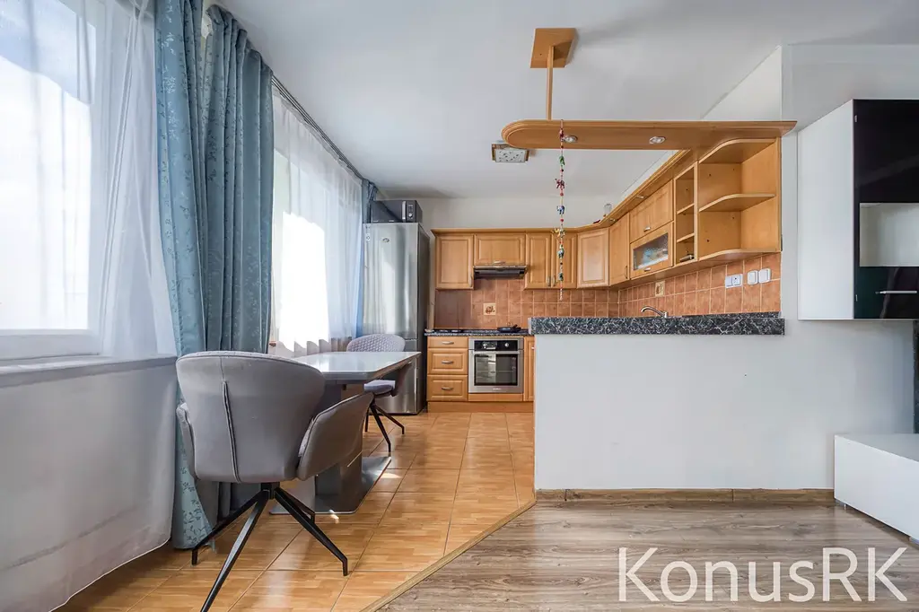 Nabízíme k prodeji krásný byt o dispozici 3+kk 69 m2 s komorou v bytě 2m2, s komorou naproti bytu 1,5m2 a sklepem 2m2 v suterénu doma, v žádané lokalitě Kladno -Kročehlavy, Hřeběčská. Jednotka se nachází ve 3. NP revitalizovaného pětipatrového panelového domu a je po kompletní rekonstrukci, má zděné jádro. Byt je velmi světlý, má prostorný obyvák s krásným výhledem do okolí, chodbu s dostatkem úložného prostoru, skříně jsou na chodbě a v obyváku. Koupelnu s vanou. Toaleta je samostatně oddělena od koupelny. Značnou výhodou jsou ložnici s výhledem do zeleni, do vnitrobloku. První z nich slouží jako dětský pokoj, a druhá, jako rodičovská ložnice. Každý z těchto pokojů má díky výše umístěné poloze bytu dostatek denního světla. Samotný byt je aktuálně vybaven vestavěnými skříněmi jak v obyváku tak i v ložnicích. Nechybí ani vybavení v obývacím pokoji s kompletně zařízenou krásnou kuchyňskou linkou s elektrospotřebiči Bosh a AG (myčka, trouba, indukční deska, digestoř, lednice, mikrovlnná trouba) stolem, pohovkou a televizní stěnou. Nábytek může zůstat v ceně. V chodbě a koupelně je položena keramická dlažba, v obytných místnostech plovoucí podlaha. Okna jsou plastová, což zajišťuje výborné tepelně-izolační vlastnosti. Vytápění a ohřev teplé vody jsou řešeny dálkově. Energetická náročnost budovy odpovídá třídě PENB B. Hřeběčská ulice patří mezi klidné rezidenční části Kladna s kompletní občanskou vybaveností v bezprostředním okolí. Bytový dům se nachází naproti OC Oáza, v docházkové vzdálenosti od lesoparku Bažantnice, který nabízí prostor pro relax i sport. 4 minuty od domu je zastávka MHD a PID s pohodlným spojením do Prahy i centra města. V případě zájmu o více informací nebo osobní prohlídku mě neváhejte kontaktovat.