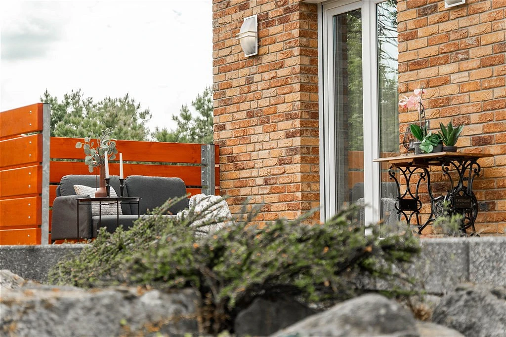 Dispozice domu je prakticky řešená s důrazem na komfort každodenního fungování. V přízemí najdete světlý obývací pokoj se vstupem na terasu a zahradu, kuchyň, prostornou chodbu s vestavěnou skříní, ložnici, prádelnu, technickou místnost a koupelnu s rohovou vanou. Samozřejmostí je garáž s přímým vstupem do domu.
