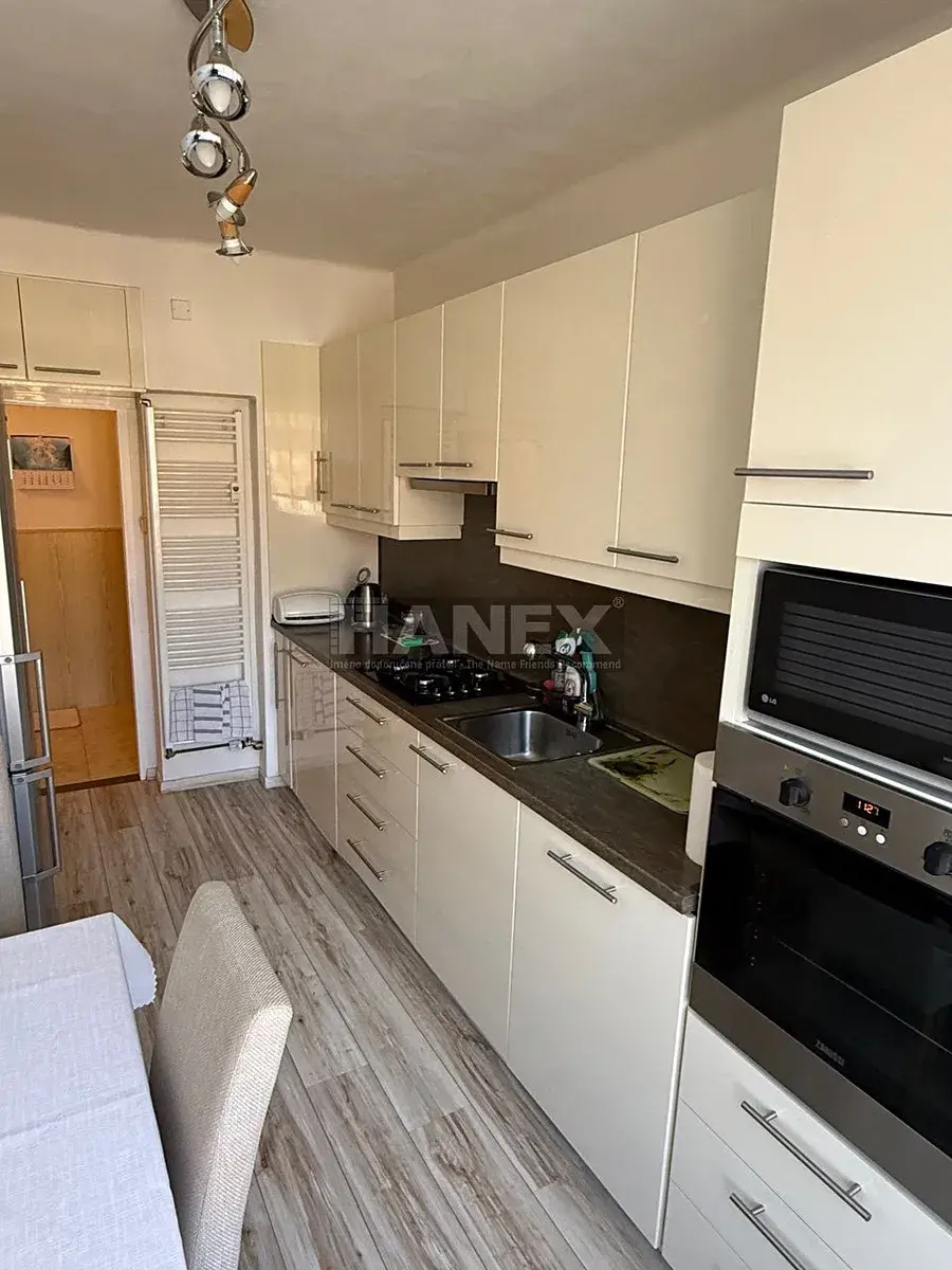Nabízíme na prodej pěkný světlý byt 3+1 se třemi balkony (po 1,1 m2) o podlahové ploše 71,6 m2 v posledním 3. patře cihlového domu z 60. let na krásném a klidném místě v Příbrami. Z bytu jsou hezké výhledy do zeleně. Interiér bytu tvoří obývací pokoj, kuchyň s jídelním koutem, 2 ložnice, koupelna, samostatná toaleta a spíž. Orientace bytu západ a východ. Kuchyň je plně vybavená. Na podlahách parkety, plastová okna. K bytu náleží dva nadstandardní velké sklepy o velikosti 5,7 m2 a 3,3 m2, z čehož jeden je plně zděný. Klidný komorní průběžně udržovaný bytový dům, dálkové vytápění, nová střecha. Byt je v dobrém stavu, vše funkční a je ihned k nastěhování. Možnost pronájmu parkování v sousedním vnitrobloku.