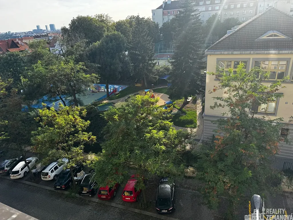 Světlý a prostorný byt v původním, ale udržovaném stavu s nachází v 5. patře s novým výtahem. Dispozice bytu: větší předsíň se vstupem do kuchyně, do komory, na WC/samostatné a bez dveří do velké společenské místnosti/haly bez oken se řadou vestavěných skříní. Z této místnosti se vstupuje do koupelny a do dvou protilehlých prostorných pokojů s orientací východní a západní, s volným výhledem. Kuchyň je vybavena linkou s novou vestavěnou myčkou, novým sporákem s el. troubou, lednicí s mrazákem a má vlastní spíž.