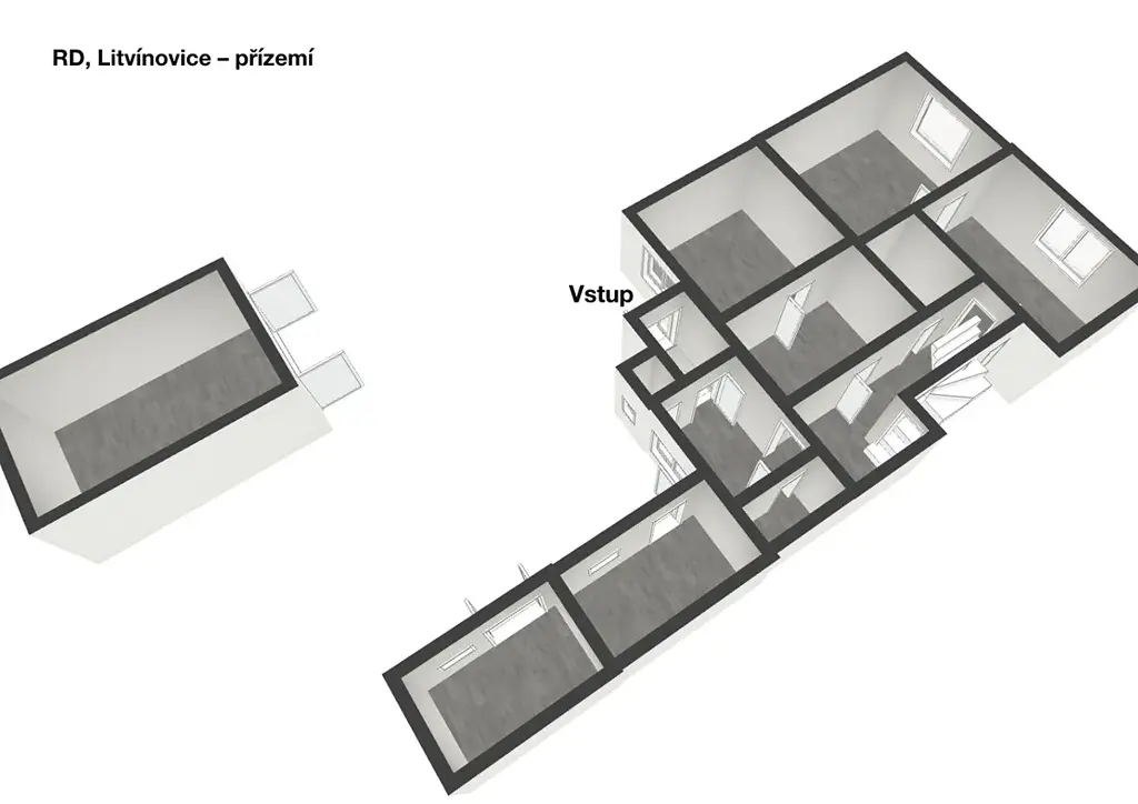 Podkroví je možné ihned obývat, např. po dobu rekonstrukce spodní části domu. Podrobnější informace o současné dispozici jednotlivých pater a velikosti místností naleznete v přiložených půdorysech ve variantě 2D a 3D.