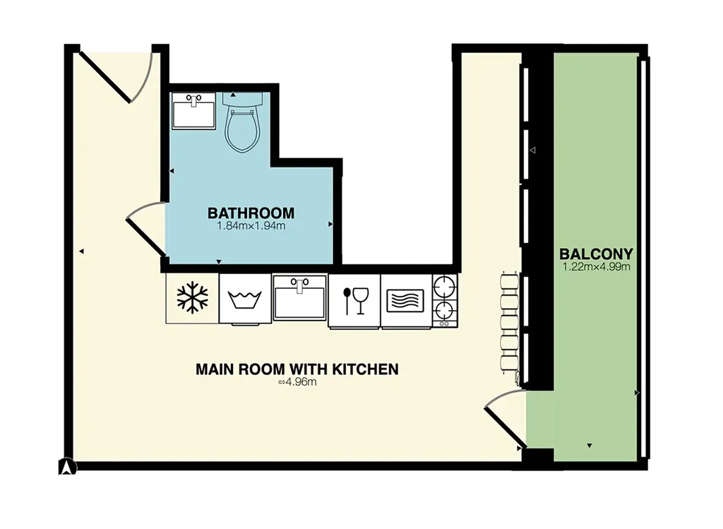 Malý krásný byt 18m² se zaskleným balkonem 5m² v 6. patře cihlového domu s výtahem.