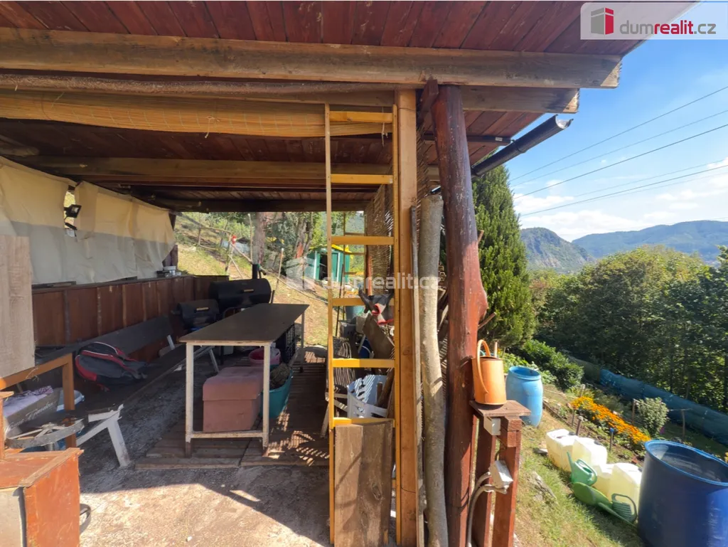 Dále na zahradě je vše v ceně, např., kůlna na nářadí, dřevěný venkovní záchod vysoká pořizovací cena, dřevěný altán kde lze grilovat, posedět s výhledem do zeleného okolí.