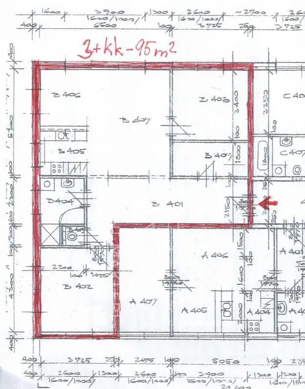 - dispozice: 3+kk (+ prostorná chodba + sklad bez oken)