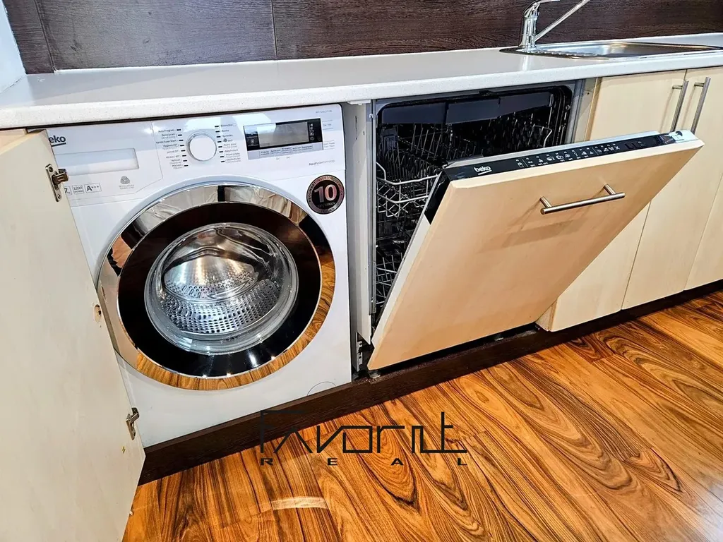 Kuchyňská linka je vybavena včetně spotřebičů ( varná deska, digestoř, elektrická trouba, MVT, pračka, myčka ). V kuchyni dále zůstává jídelní stůl a židle.