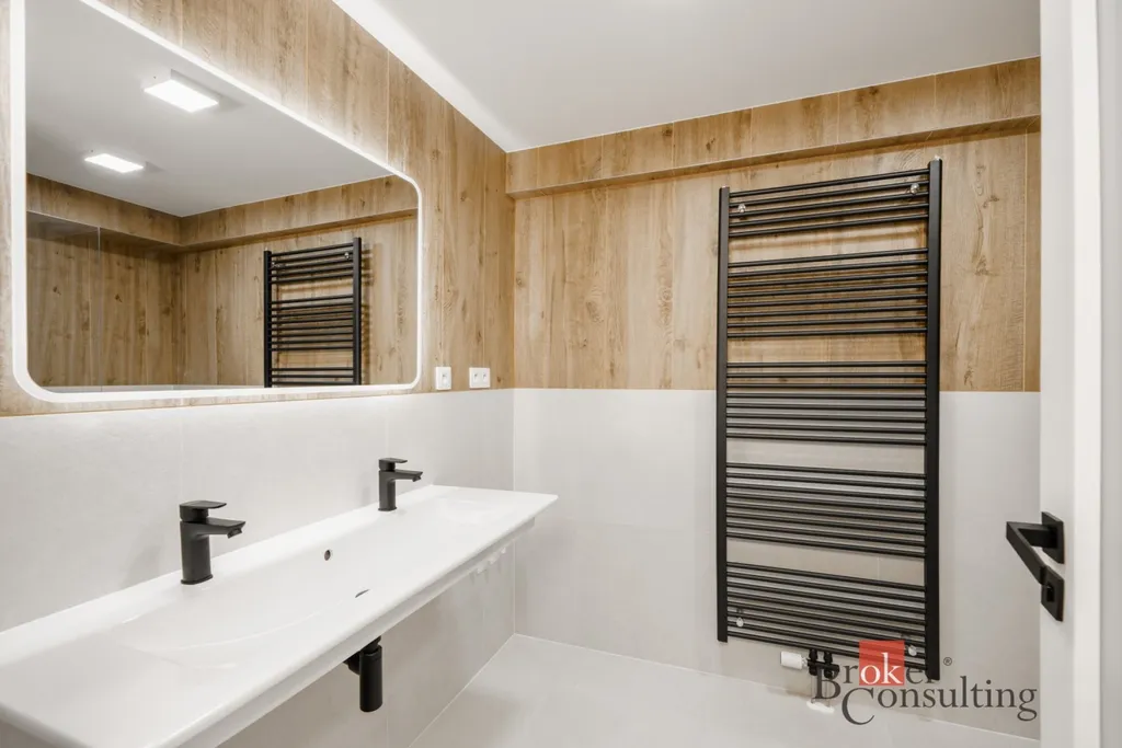 Byt je součástí moderně zrekonstruovaného domu a nabízí komfortní bydlení splňující vysoké nároky na pohodlí i kvalitu provedení. Interiér bytu působí světlým a vzdušným dojmem díky velkým oknům, která zajišťují dostatek denního světla. Součástí bytu je moderní kuchyňská linka se spotřebiči, kvalitní vinylové podlahy v obytných místnostech a v koupelně i na toaletě dlažba spolu s prvotřídními italskými obklady.
