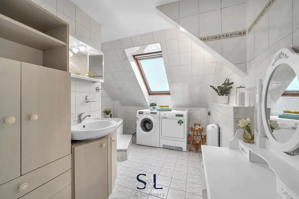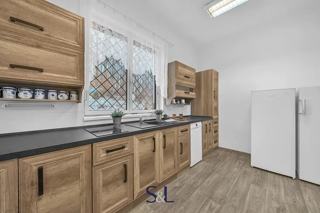 Dům poskytuje skutečně široké možnosti využití, což je jeho největší přidaná hodnota. V přízemí se nachází dispozice 2+1 o výměře 67 m², na kterou navazuje prostorná garáž s regály o velikosti dalších cca 67 m². Tento prostor může sloužit nejen k parkování a jako dílna, ale také jako sklad, provozovna, ateliér, menší obchod nebo zázemí pro podnikání přímo u vašeho domova. Objekt byl navíc původně kolaudován pro provoz prodejny auto-moto součástek, což jeho využitelnost ještě dále rozšiřuje. Díky samostatnému uspořádání lze přízemí využít i jako oddělený byt například pro rodiče, dospělé děti nebo k pronájmu. V podkroví se nachází velkoryse řešený byt o dispozici 3+kk s výměrou přibližně 134 m², který poskytuje dostatek prostoru pro komfortní rodinné bydlení. Dům tak umožňuje vícegenerační soužití bez ztráty soukromí, kombinaci vlastního bydlení s investičním pronájmem nebo propojení domova a podnikání pod jednou střechou.