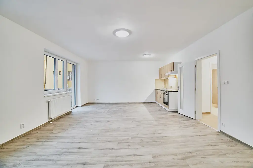 Byt disponuje kuchyňskou linkou s varnou deskou, troubou a digestoří. V koupelně je umístěna vana, topný žebřík a připojení na pračku. Budoucí nájemníci ocení vzdušnost celého bytu díky francouzskému oknu.