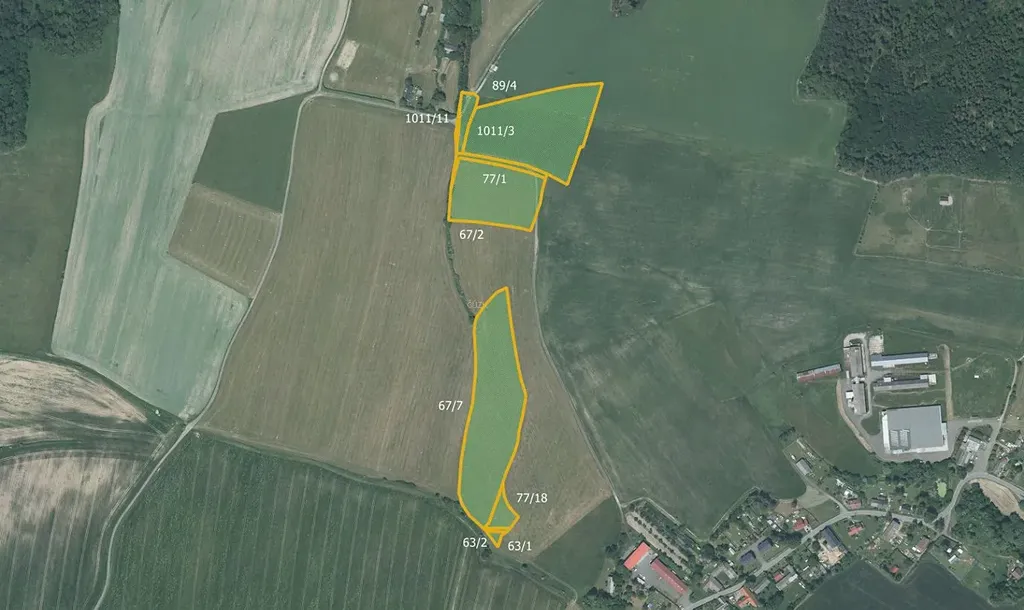 1/2 na parcelách č.: 63/1, 63/2, 67/2, 67/7, 77/1, 77/18, 89/4, 1011/3 a 1011/11.