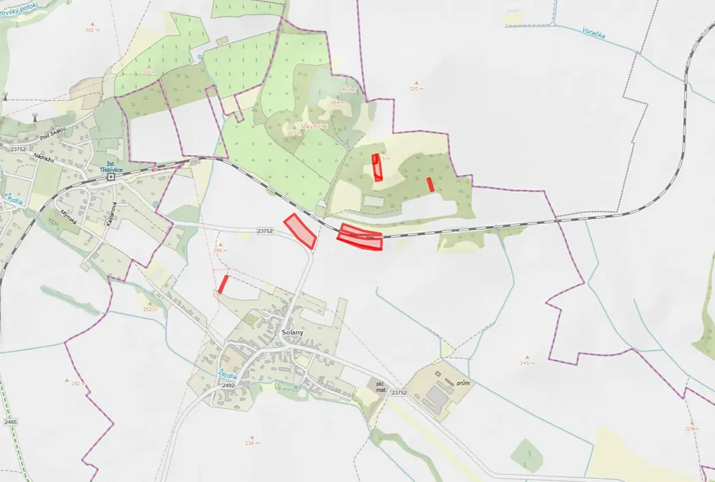 Celková výměra pozemků činí 19 156 m². Vše je nabízeno ve 100% vlastnictví.