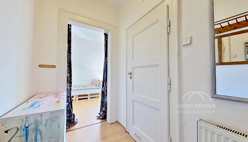 Nechybí ani praktická menší místnost, která může sloužit jako šatna, komora nebo třeba zázemí pro sportovní vybavení.Nespornou výhodou je kompletní vybavení bytu, od postele, přes televizi, pračku až po žehlící prkno a žehličku. Interiér je světlý a příjemný, s dostatkem denního světla, a nabízí prostor, který si snadno přizpůsobíte svému životnímu stylu.