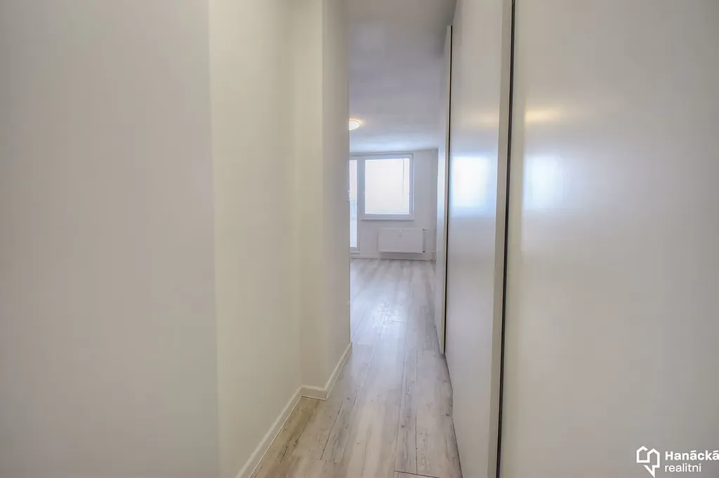 Pronájem bytu 2+kk po rekonstrukci, ul. Černá cesta v Olomouci. Výměra bytu činí 39 m2 + lodžie a nachází se v 5. patře s novým výtahem. Byt je velice dobře řešený. Ve spojovací chodbě s kuchyňským koutem se nachází vestavěné skříně s možností uložení všech věcí a šatů. Kuchyň je vybavena veškerými spotřebiči: lednicí, myčkou, troubou, mikrovlnná troubou a varnou deskou. Vše zn. Bosch. V obývací části je k dispozici šedá pohovka. Odtud je vstup na lodžii a do samostatné ložnice. Koupelna je vybavena sprchovým koutem, umyvadlem, skříňkou a zrcadlem. Toaleta je součástí koupelny. K bytu dále náleží sklepní kóje. V ceně nájmu nejsou zahrnuty zálohy na energie ve výši 2.800 Kč. Je také možné využít internetové připojení. Byt bude k dispozici od května 2026.