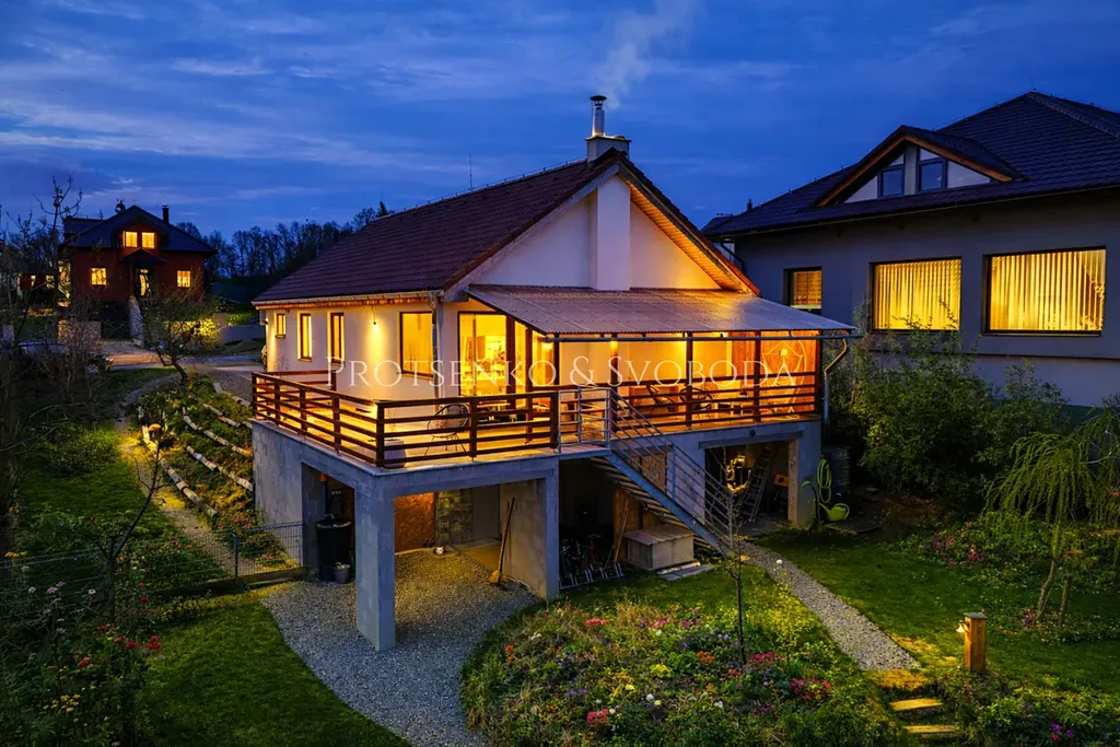 Tato nemovitost není jen krásným domem. Je to místo, kde se spojuje moderní bydlení s duší, promyšlený prostor s pohodlím a zahrada s atmosférou, která se jen těžko popisuje slovy. Je to domov pro ty, kdo nechtějí jen bydlet, ale skutečně žít.