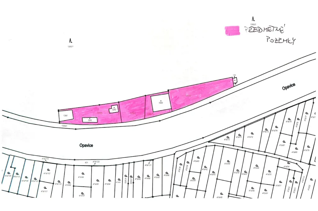 Předmětné pozemky tvoří funkční celek s pozemky p. č. 1260, 1261, 1262, 1263 a 1264 v témže katastrálním území, na nichž se nacházejí stavby chat a jejich příslušenství je ve vlastnictví pana Nicolase Masuelliho a paní Markéty Čeřenové.