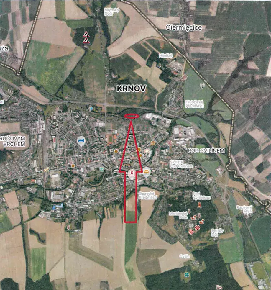Pozemky jsou z jedné strany ohraničeny polní cestou a z druhé strany komunikací ve vlastnictví města Krnov, podél které protéká řeka Opavice.