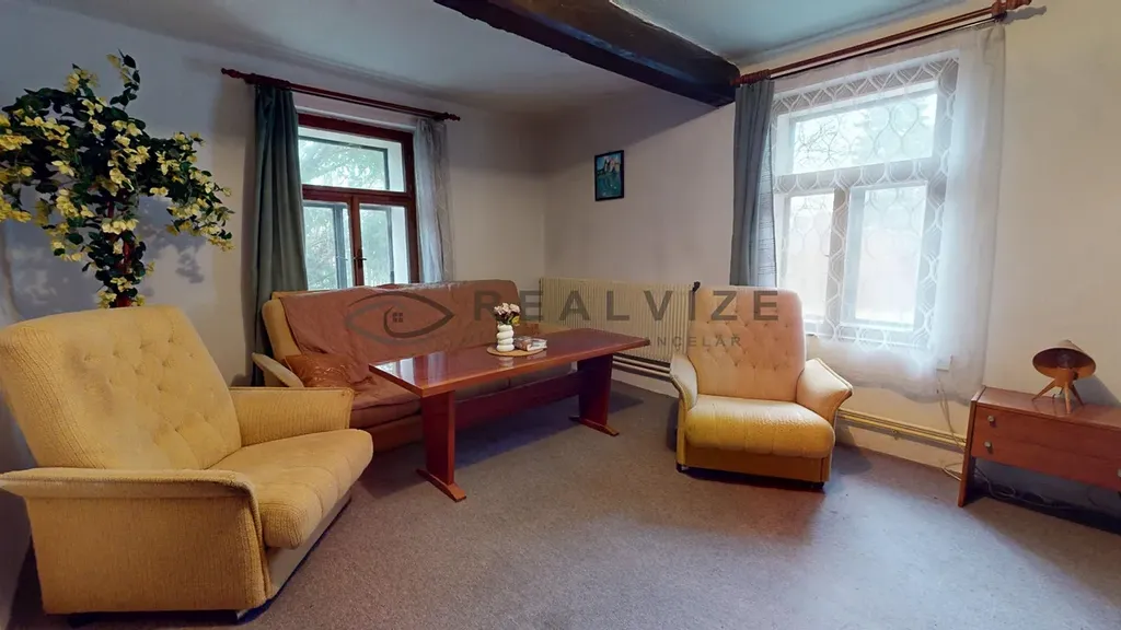 Obytná část chalupy je situována v přízemí, kde se nachází obývací pokoj, kuchyň, jídelna, ložnice, koupelna a skládek. Součástí objektu je také stodola a další prostory využitelné jako sklady. Půdní prostor nabízí možnost vybudování dalšího obytného patra, což dává chalupě velký potenciál pro rozšíření a rekonstrukci dle vlastních představ. Na pozemku se dále nachází krytá veranda a kryté parkovací stání. Přístup k nemovitosti je zajištěn z obecní asfaltové komunikace.