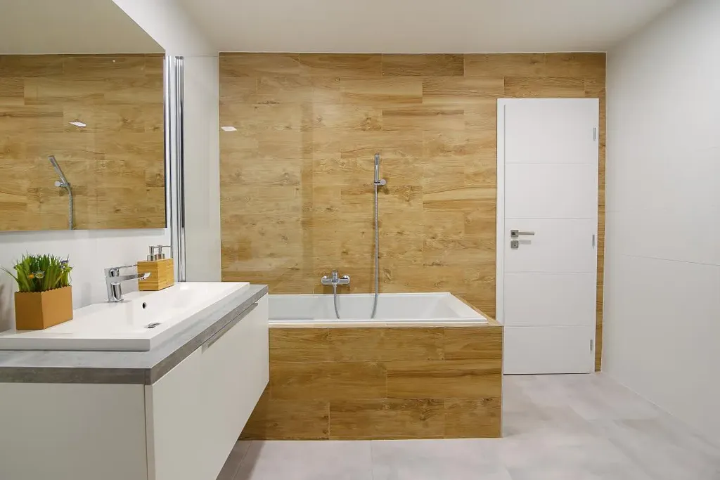 V bytě jsme využili na maximum každý centrimetr. Vybudovali jsme technickou místnost, do které si zároveň můžete uložit boty a a kabáty a mít tak neustále pořádek na chodbě. Koupelna je nadstandardních rozměrů a díky obrovskému oknu a dennímu světlu patří k dominantě bytu.