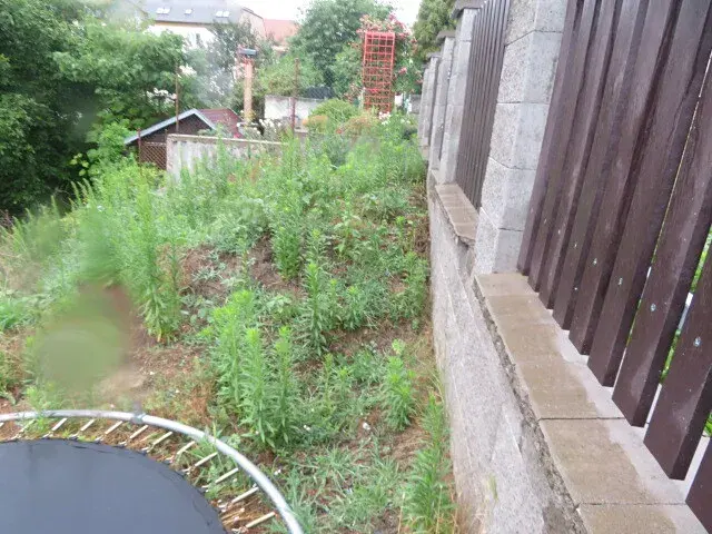 před 5 lety). Střecha budovy je plochá s živičnou krytinou. Na střeše jsou žlaby se svody. K domu patří částečně oplocená zahrada, na které se nachází bazén. Oplocení je plastové se zděnými sloupky a zděnou podezdívkou. Před domem
