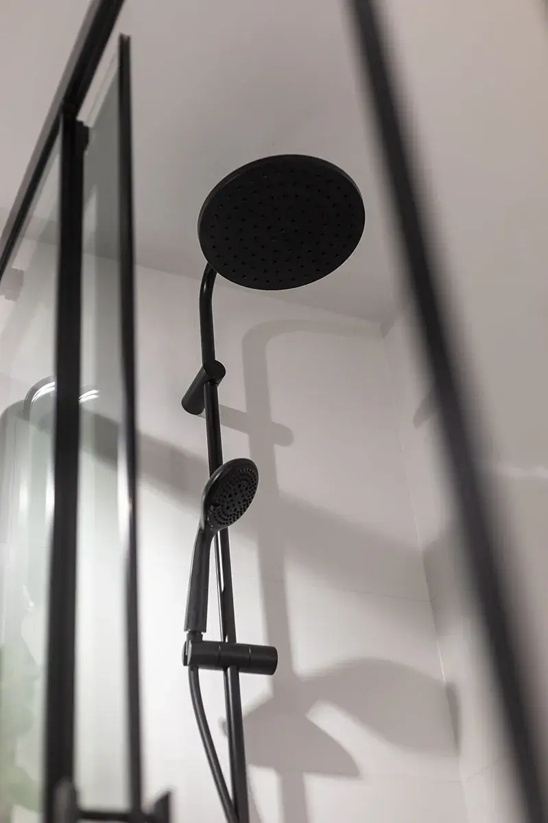 V koupelně jsou obklady a dlažba, které k sobě ladí, nová sanita sprchový kout a závěsná toaleta, která je součástí koupelny.
