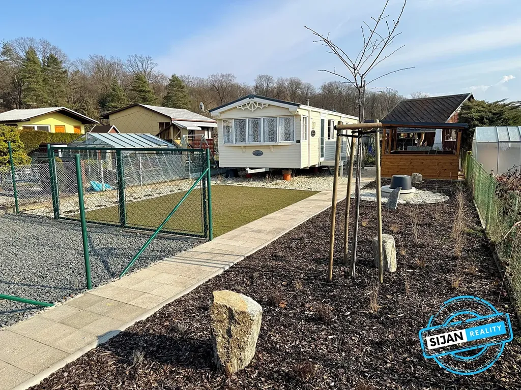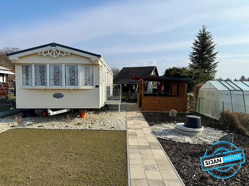 Na pozemku o velikosti 244 m2 se nachází mobilheim Granada, který je řešen jako 3+kk o velikosti přes 40 m2.