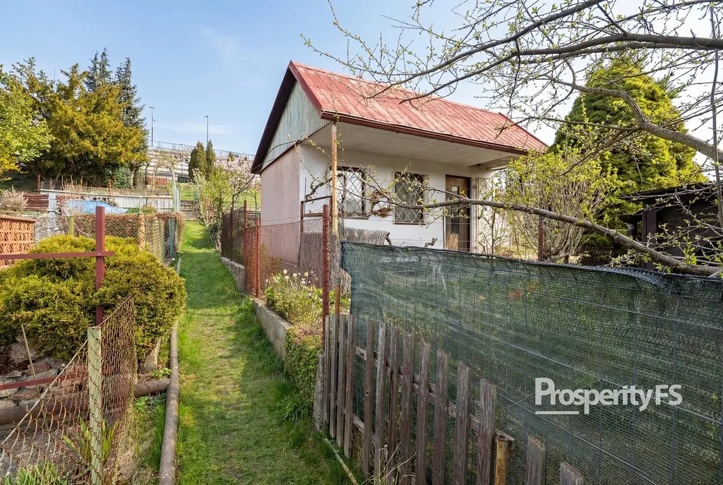 Pozemek je rozdělen na dvě části chodníkem mezi jednotlivými parcelami. První část je zastavěna chatkou a terasou, která je orientována na jižní stranu a je tak ideální na ranní kávu s výhledem do zbytku zahrádkářské kolonie. Druhá část pozemku je zastavěna skleníkem, který je uzamykatelný. Všechna ostatní půda je využívána k pěstování plodin.