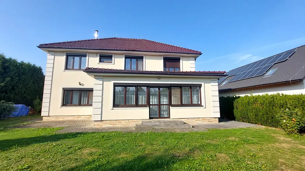 Dům má 2 podlaží a prostornou půdu. Okna jsou vybavena stínící i bezpečností roletou.