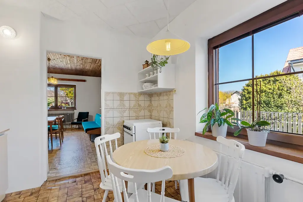 Dům je z větší části po rekonstrukci. V přízemí najdete kuchyň s obývacím prostorem, ložnici, šatnu , koupelnu s WC a vstupní chodbu z které se dostanete do další části domu, kde na vás čeká byt o velikosti 1+1 s koupelnou a WC. V patře se nachází 3 pokoje a vstup na rozlehlou balkonovou terasu. Dům je vytápěn tepelným čerpadlem, je částečně podsklepen.