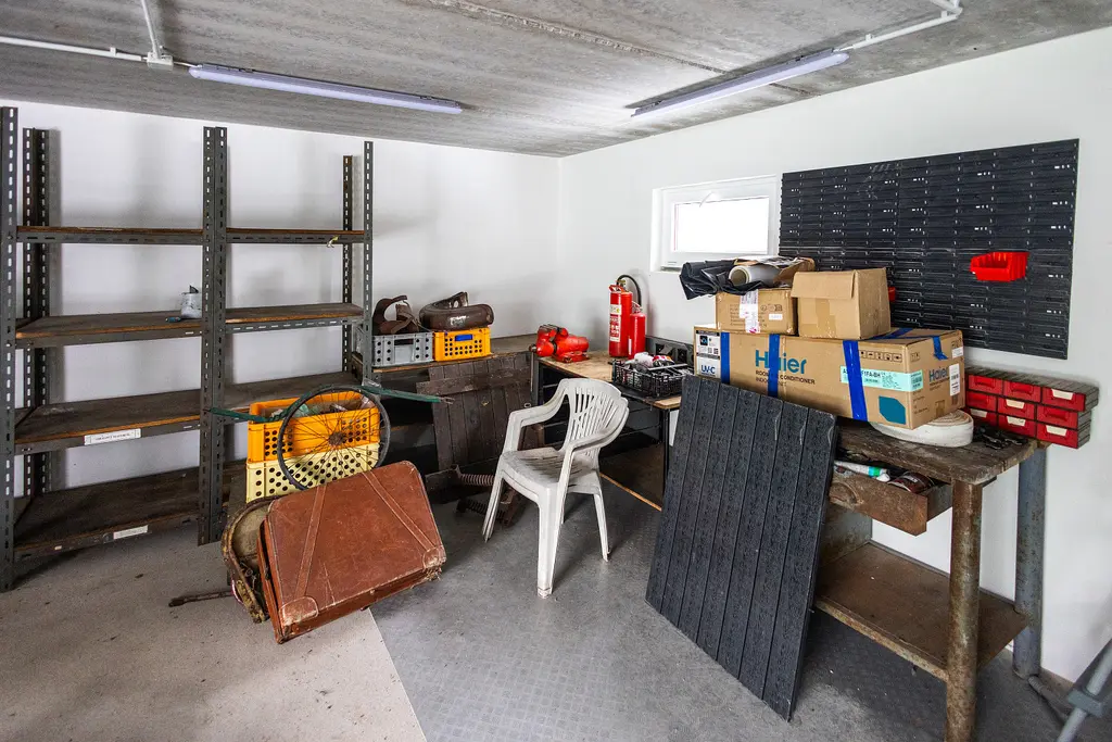 V obou budovách je celkem 30 garážových/skladových stání, některé z nich jsou ale propojené, aby vznikly větší prostory a celkově větší variabilita využití.