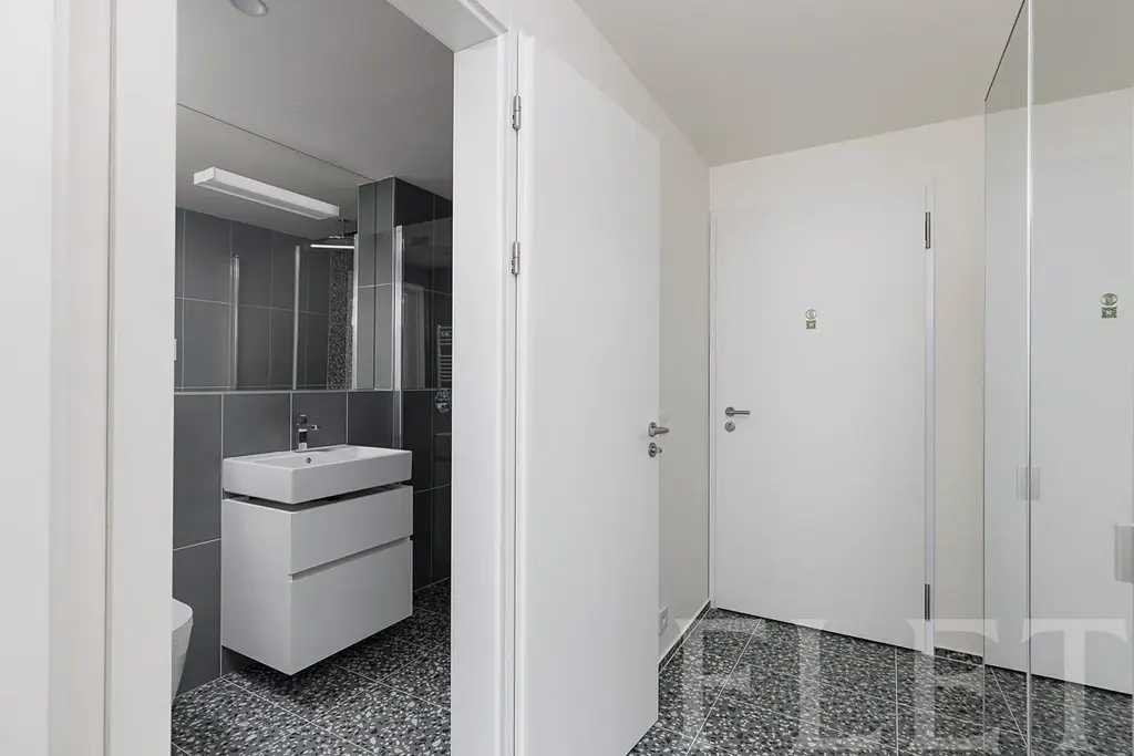 Kuchyňská linka je vybavena základními spotřebiči a v předsíni se nachází prostorná vestavěná skříň, která poskytuje dostatek úložného prostoru. Koupelna disponuje sprchovým koutem a moderním designem.