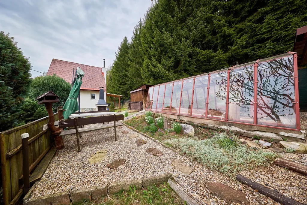 Pozemek je o celkové výměře cca 350 m2, je rovinatý až mírně svažitý k jihu a tento je ve vlastnictví Města Trutnov. Na pozemku se nachází množství okrasných a ovocných keřů a stromů. Zahrádkáři jistě ocení velký skleník, kaskádově vytvořené záhonky pro pěstování zeleniny a bylinek, či nádrž na dešťovou vodu. Za zmínku stojí pěkný prostor určený pro posezení se zahradním betonovým grilem. Velikost pozemku umožňuje umístění též např. bazénu, trampolíny či jiného sportovního vybavení.