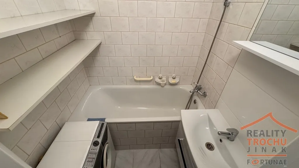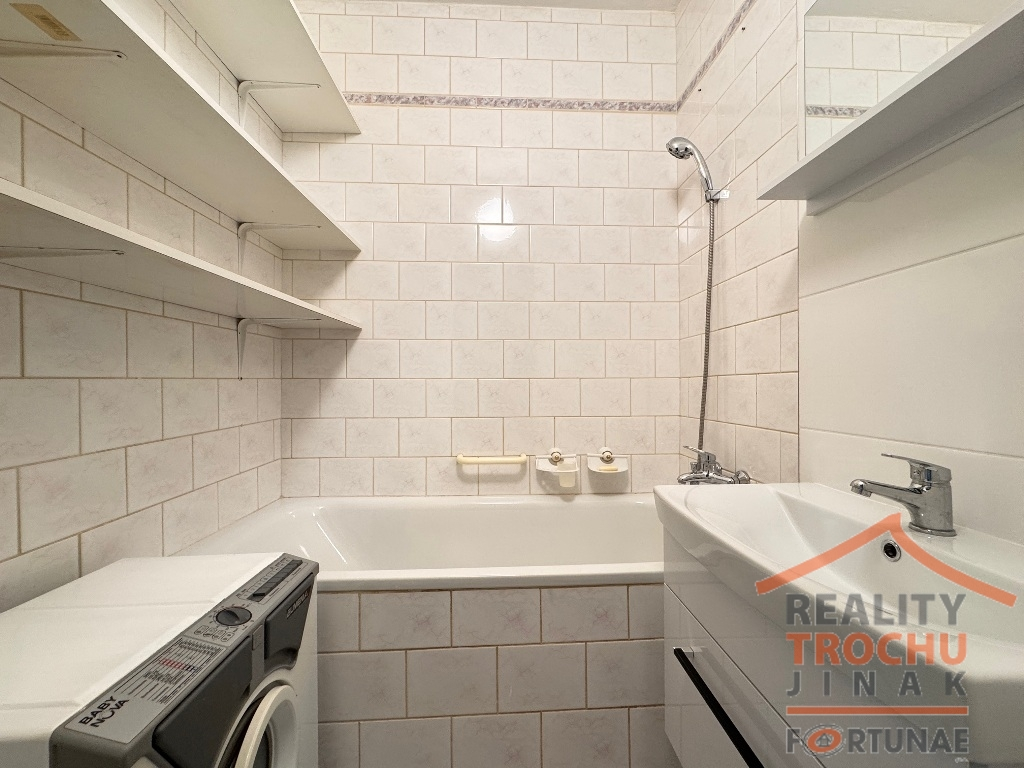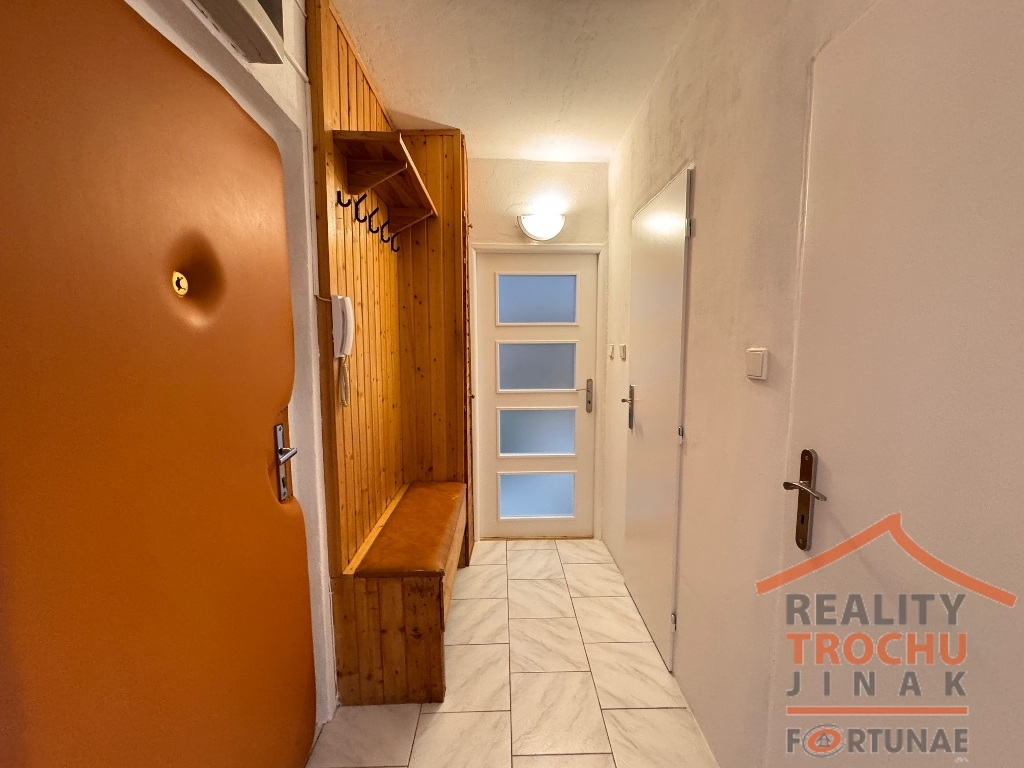 Dispozice: 2 obytné místnosti, kuchyňský kout, koupelna (vana), WC, sklepní kóje. Vytápění: ÚT – dálkové, podlahy: dlažba a v ložnici plovoucí podlaha. Vybavení bytu: lednice s mrazákem, mikrovlnná trouba, digestoř, kombinovaný sporák, sedací souprava, křeslo, obývací stěna, TV, šatní skříň + skříňky. Možnost pronájmu i bez vybavení nábytkem. Parkování u domu.