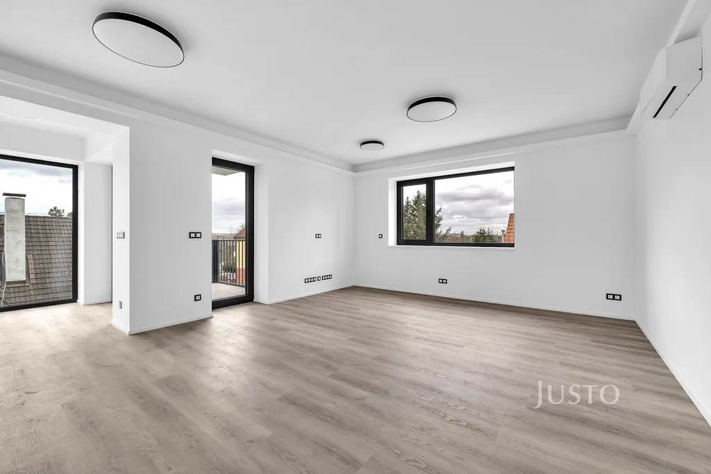 Nabízíme k pronájmu prostorný byt 4+kk o celkové užitné ploše 146,4 m² s terasou (5,1 m²), a balkónem (2,6 m²), v novostavbě na adrese Na proutcích 239, Praha 4 – Šeberov. Byt se nachází ve druhém nadzemním podlaží samostatně stojícího domu v klidné části obce. Součástí nabídky je také sklep (6,2 m²) a 2 vlastní venkovní parkovací stání.
