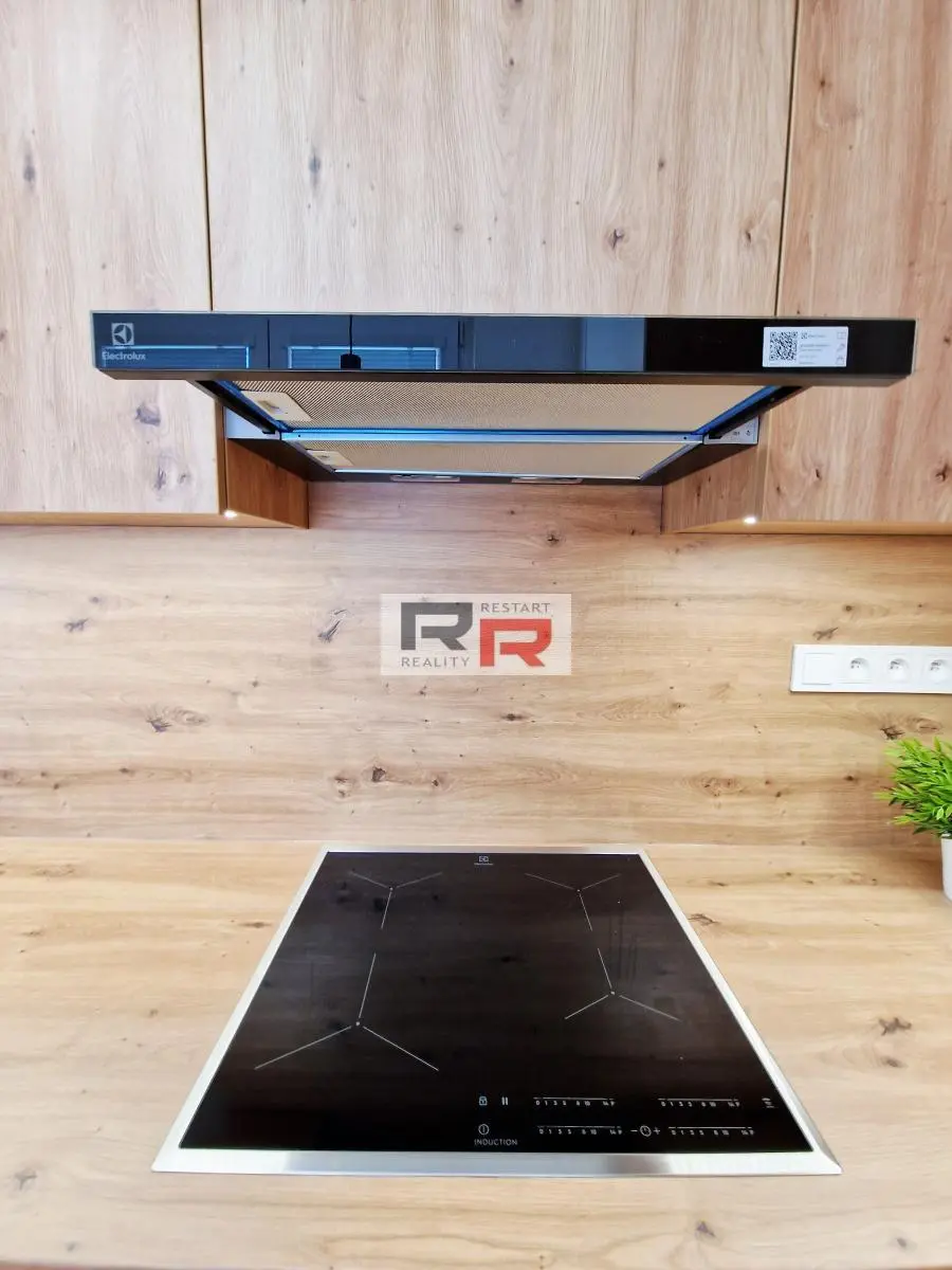 Byt bude zařízen novou kuchyň. linkou na míru včetně vestav. spotřebičů zn. Elektrolux (indukční varná deska, digestoř, parní trouba, vestavěná mikrovlnka a myčka zn, Bosch), potravinovou skříní, obývací stěnou se skříňkou pod tv a velkou vestavěnou skříní v chodbě.