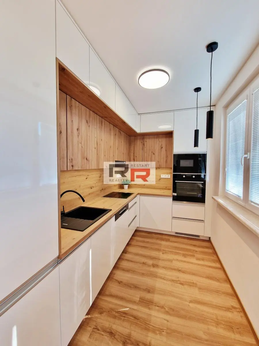 Pronájem kompletně zrekonstruovaného bytu 3+KK o velikosti 63m2 s balkónem v Olomouci - ul. Dělnická. Jedná se o byt ve 4.NP panelového domu bez výtahu. V bytě proběhla kompletní rekontrukce. Na podlaze je nová vinylová podlaha a dlažba. Jádro je zděné s vanou, umyvadlovou skříňkou včetně zrcadlové galerie a přípojkou na pračku. Toaleta je samostatně. V celém bytě je nová elektrika, sádrokartonové podhledy včetně LED svítidel, veškeré rozvody a obložkové dveře včetně interiérových dveří zn. Porta. V chodbě je k dispozici noční osvětlení včetně senzorového svícení a velká vestavěná skříň s botníkovou stěnou na míru. Dva pokoje jsou neprůchozí o velikosti 12,42 a 12,28m2, obývací pokoj o velikosti 18,59m2 je průchozí.