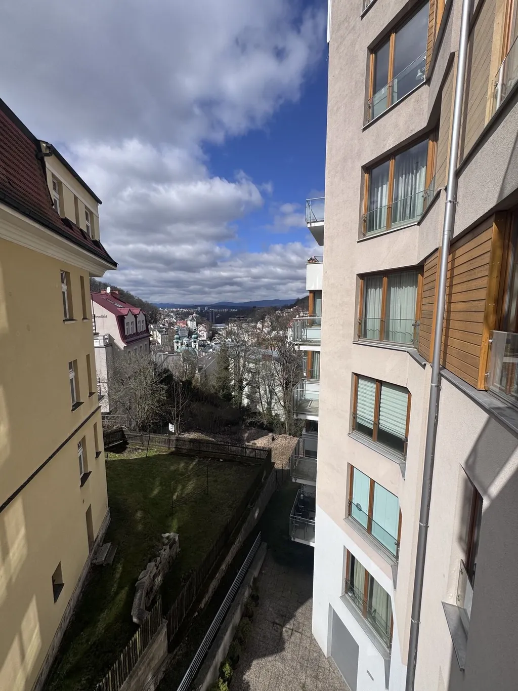 Balkon poskytuje nádherný, příjemný na historické centrum Karlových Varů a okolní přírodu.