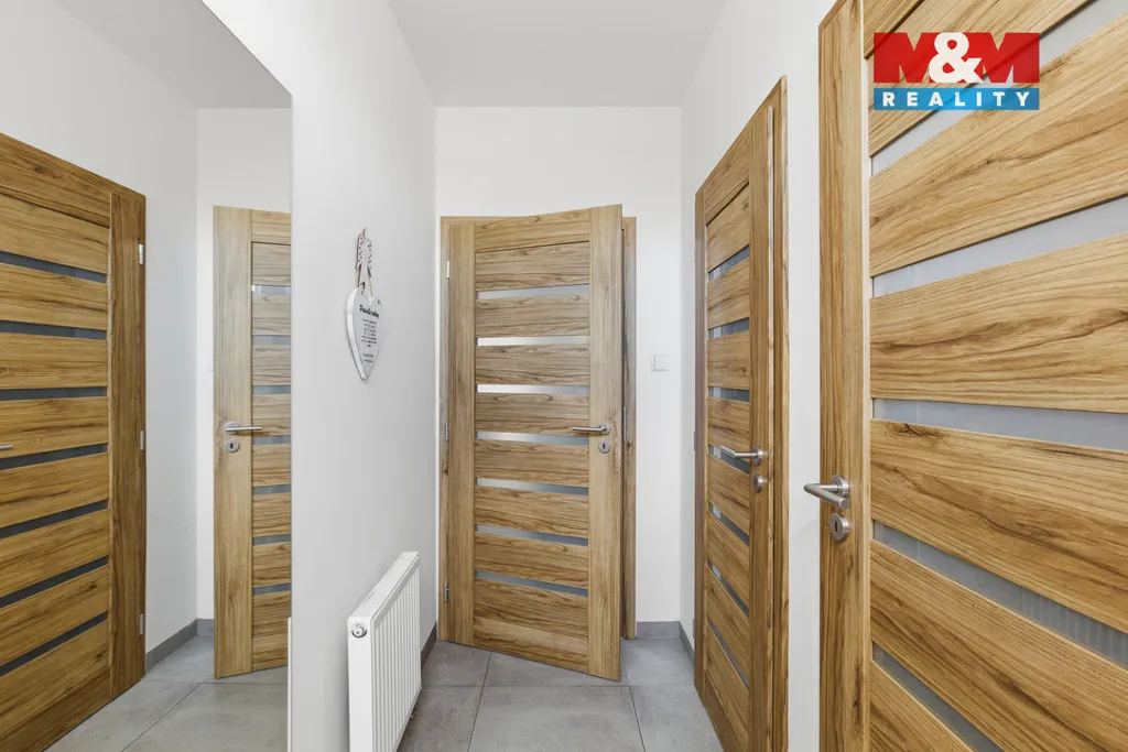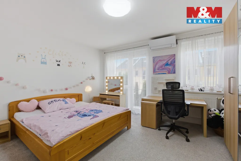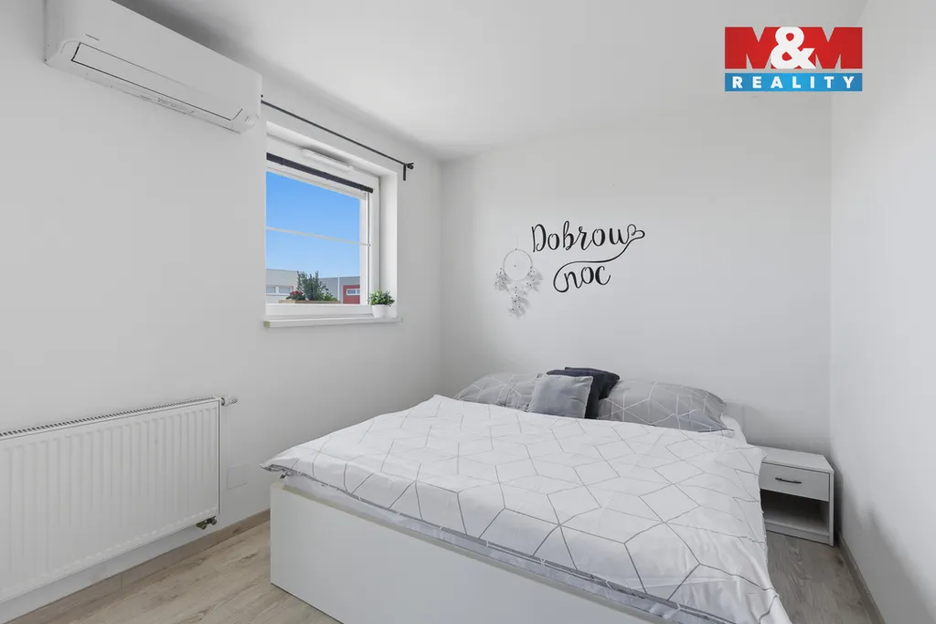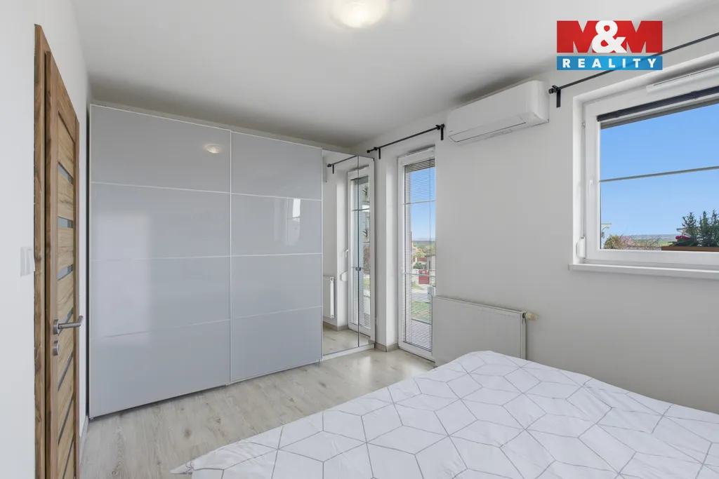 Nabízím k prodeji moderní řadový rodinný dům o dispozici 4+kk a podlahové ploše 126 m², který poskytuje příjemné a komfortní zázemí pro rodinné bydlení. Dům splňuje nároky na současný standard – energetická náročnost třídy C, klimatizace ve všech místnostech pro maximální pohodlí i v letních měsících a předokenní rolety v ložnici a dětském pokoji zajišťující klid a soukromí.