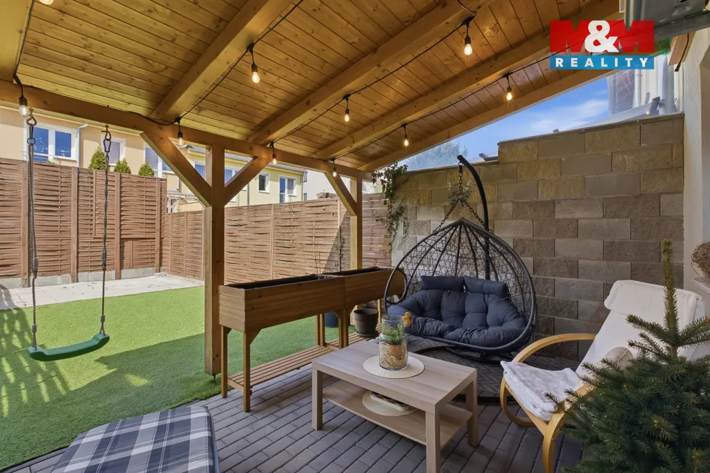 Na dům navazuje zahrada s dřevěnou pergolou, která nabízí ideální místo pro odpočinek, posezení s rodinou nebo letní grilování. Celkově se jedná o velmi příjemné bydlení, které kombinuje praktičnost, moderní vybavení a pohodovou atmosféru domova.