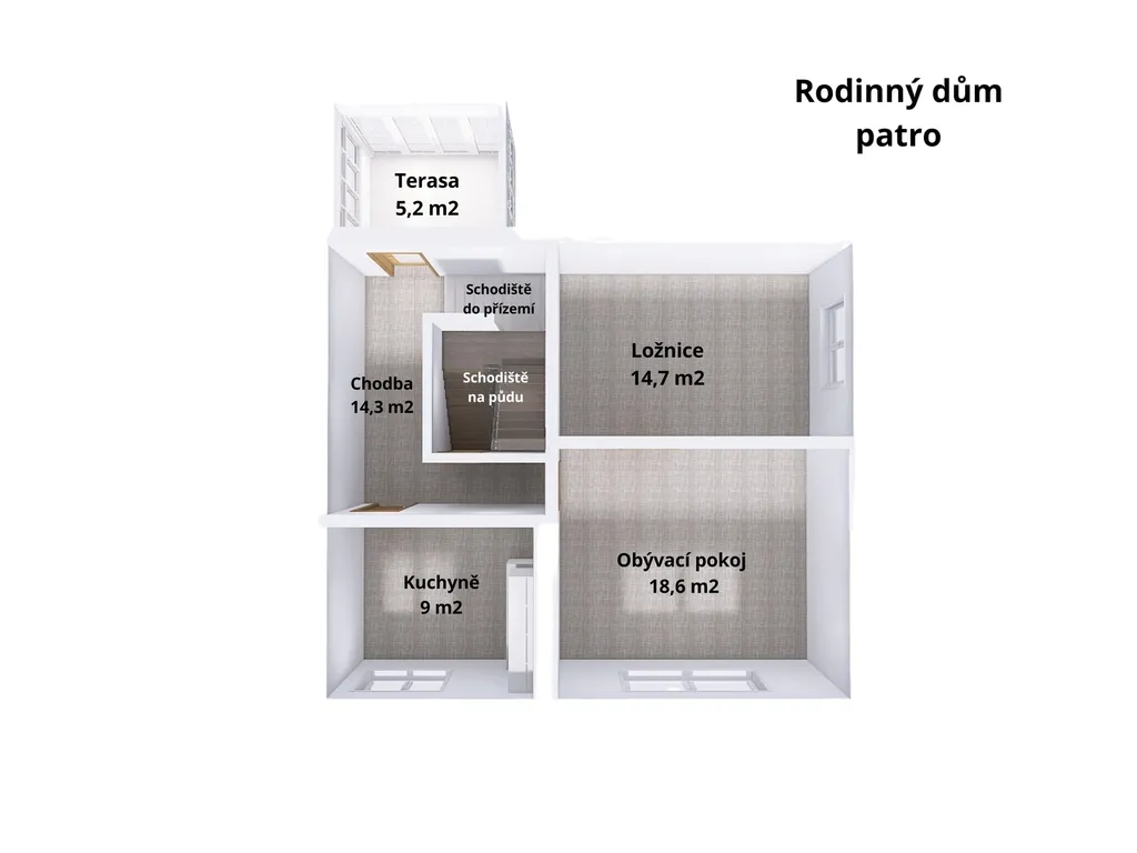 -Patro: kuchyně, dva pokoje.