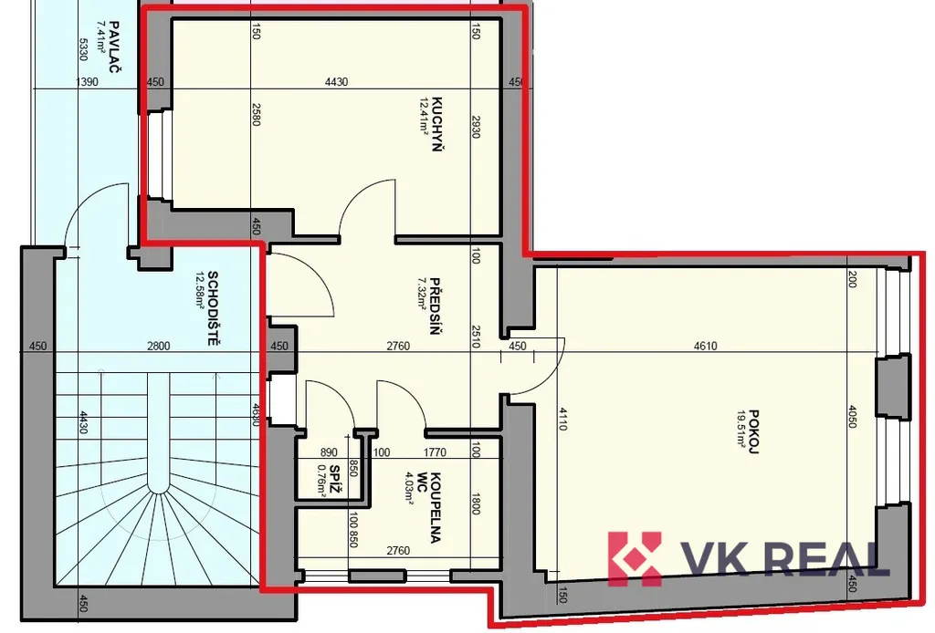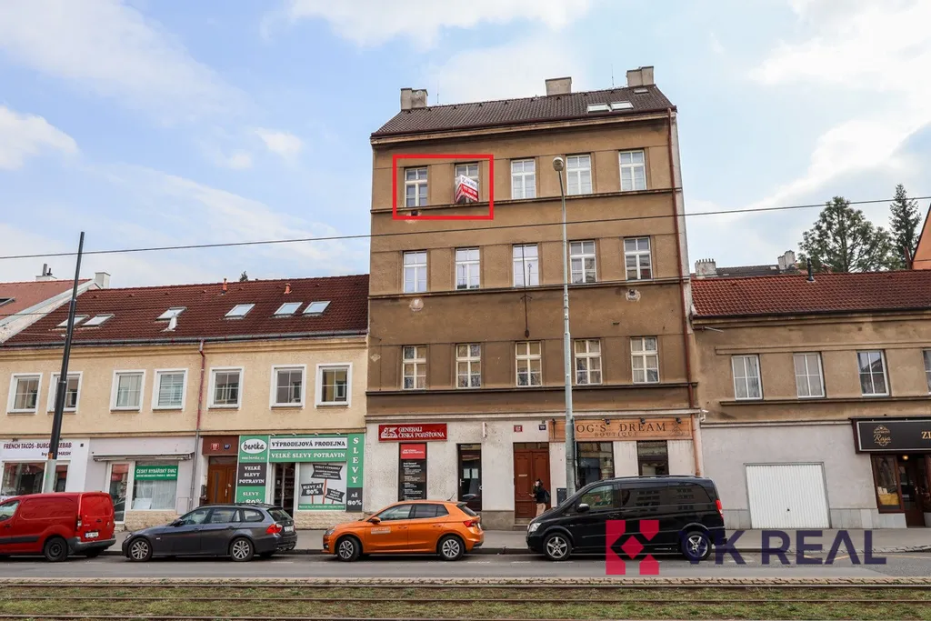 Nabízený byt zaujímá dispozici 2+KK (44 m2) a je specifický čtvercovou předsíní 7,3m2, ze které se vstupuje do jednotlivých místností. Do pokoje s kuchyňským koutem 19,5m2 (dřez, digestoř, varná deska, elektrická trouba) s orientací oken na sever do ulice Bělohorská. Do pokoje 12,4m2 s orientací oken na jižní stranu do klidného vnitrobloku přes přilehlou pavlač. Do koupelny s WC 4m2 a do komory 0,8m2. Byt prošel před nedávnem rekonstrukcí. Vytápění bytu je zajištěno pomocí lokálních topidel WAW. Ohřev teplé vody elektrickým bojlerem. Díky tomu jsou výdaje na energie pod vlastní kontrolou.