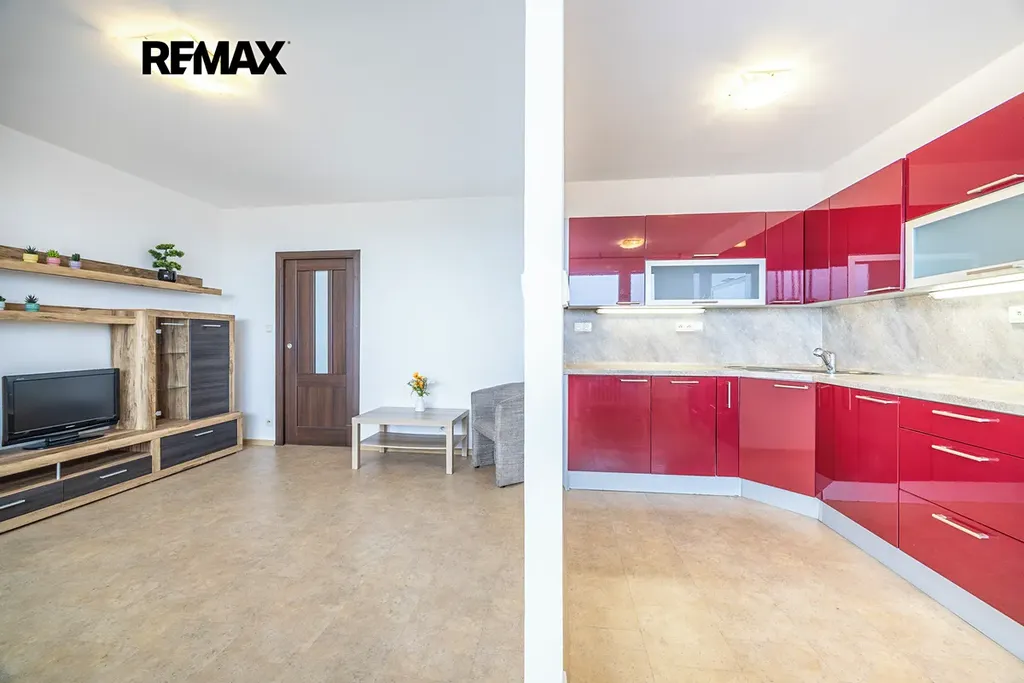 Byt je částečně zařízený. K dispozici je kuchyňská linka s myčkou, plynovou varnou deskou, multifunkční troubou a plynovým sporákem. Koupelna prošla kompletní rekonstrukcí a byt působí čistě, světlým a udržovaným dojmem. Na podlahách je vinyl.