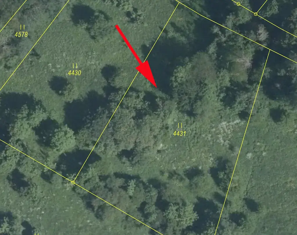 Prodáme pozemek, louku s porostem stromů (možno vykácet) v k.ú. Koberovy, parc.č. 4431.