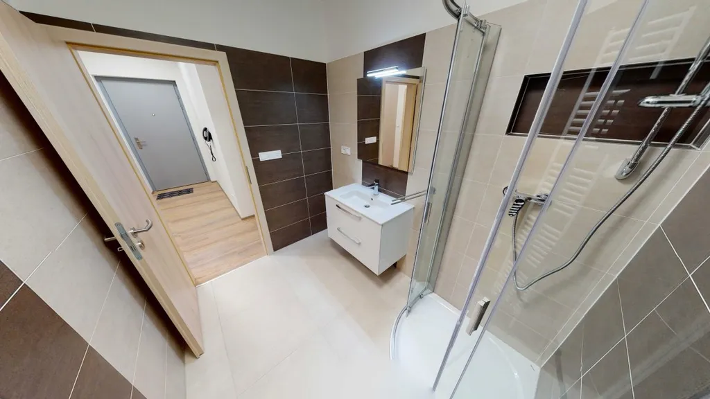 Byt se nabízí částečně vybavený. Kuchyňský kout disponuje se všemi spotřebiči - lednice, mikrovlnka, elektrická trouba, sklo-keramická deska, digestoř a myčka. V obývací části je tv stěna. Ložnice je vybavena šatní skříní. Všechna okna mají venkovní elektronické žaluzie. V koupelně se nachází sprchový kout, umyvadlo se zrcadlem a toaleta. V předsíní je přípojka na pračku a sušičku. Dále je předsíň vybavena na míru dělanou šatní skříni a úložnými prostory.