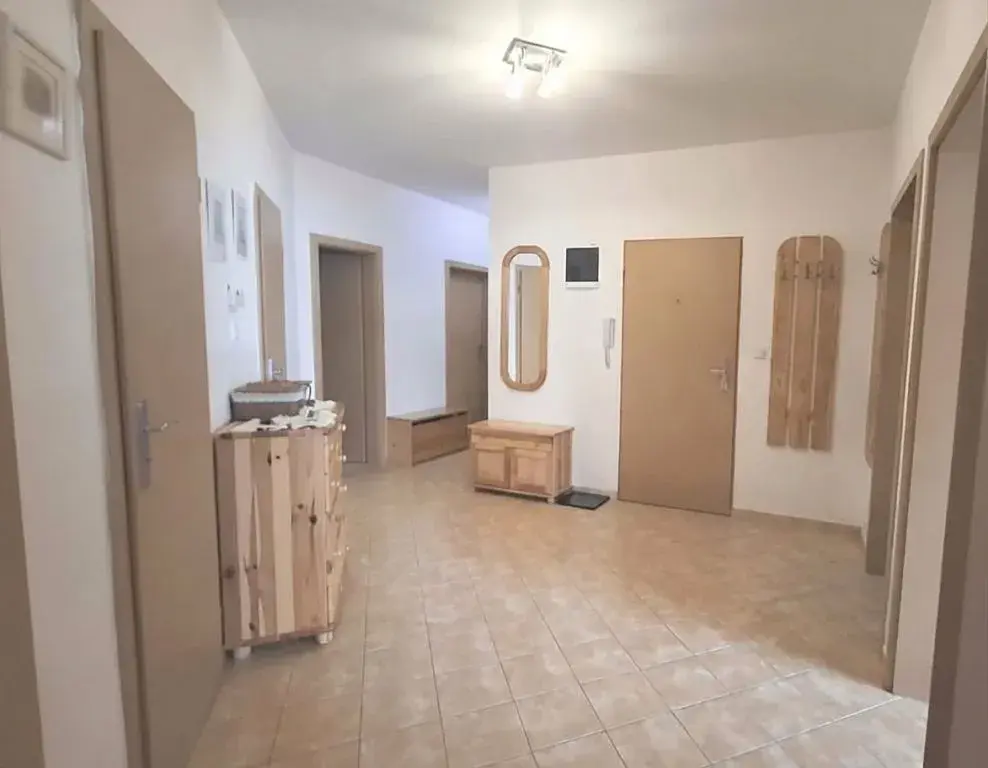 Byt se nachází v cihlovém domě, dokončeném v r. 2007, má celkovou plochu 130 m2, z toho 7,4 m2 je plocha balkonu a 2,4 m2 plocha sklepní místnosti. Byt disponuje dvěma koupelnami a WC, velkým množstvím úložných prostorů, jako jsou 2 komory/šatny, vestavěné skříně v předsíni i ve dvou místnostech, dále k bytu náleží 2 sklepní místnosti a garážové stání v 1.PP domu. Jedna ze sklepních místností je přímo u garážového stání, je tedy vhodná zejména na uskladnění sezónních pneumatik , případně i mopedu, kol, atp..