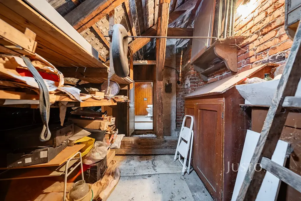 V patře jsou tři samostatné pokoje a zázemí (kuchyňský kout, WC, sprchový kout). Velkým benefitem je půdní prostor, který přímo vybízí k rozšíření obytné části – ať už o další pokoj, ateliér nebo samostatnou jednotku.