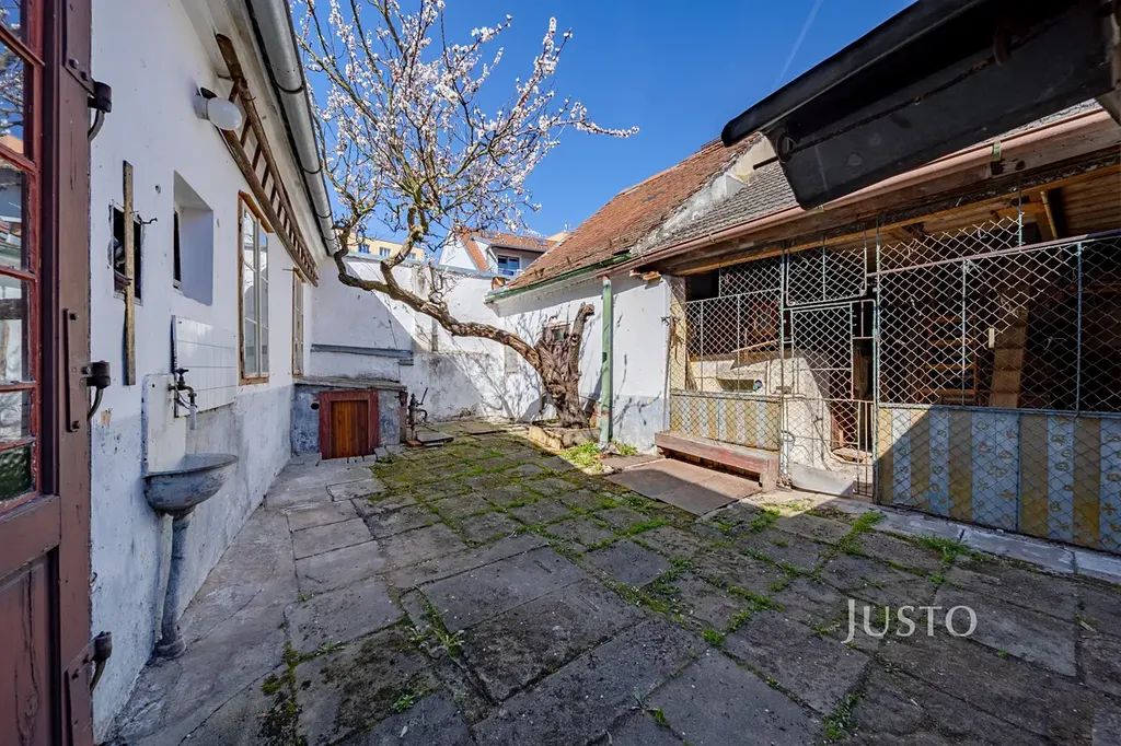 V přízemí se nachází obývací pokoj, kuchyně, koupelna a samostatné WC. Součástí domu je také průjezd, který může sloužit jako kryté parkování, dílna nebo praktické zázemí. Zároveň tudy projdete na uzavřený dvorek, který nabízí soukromí a prostor pro venkovní posezení.